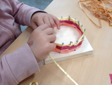 Jetzt zur Osterzeit haben wir gelernt mit Hammer und Nägeln zu hantieren. Präzise einen Nagel einzuschlagen, war gar nicht so einfach, erforderte Kraft und gezieltes Treffen. Mit Bast übten wir das Flechten. So ist ein farbenfrohes, einzigartiges Nestchen entstanden.